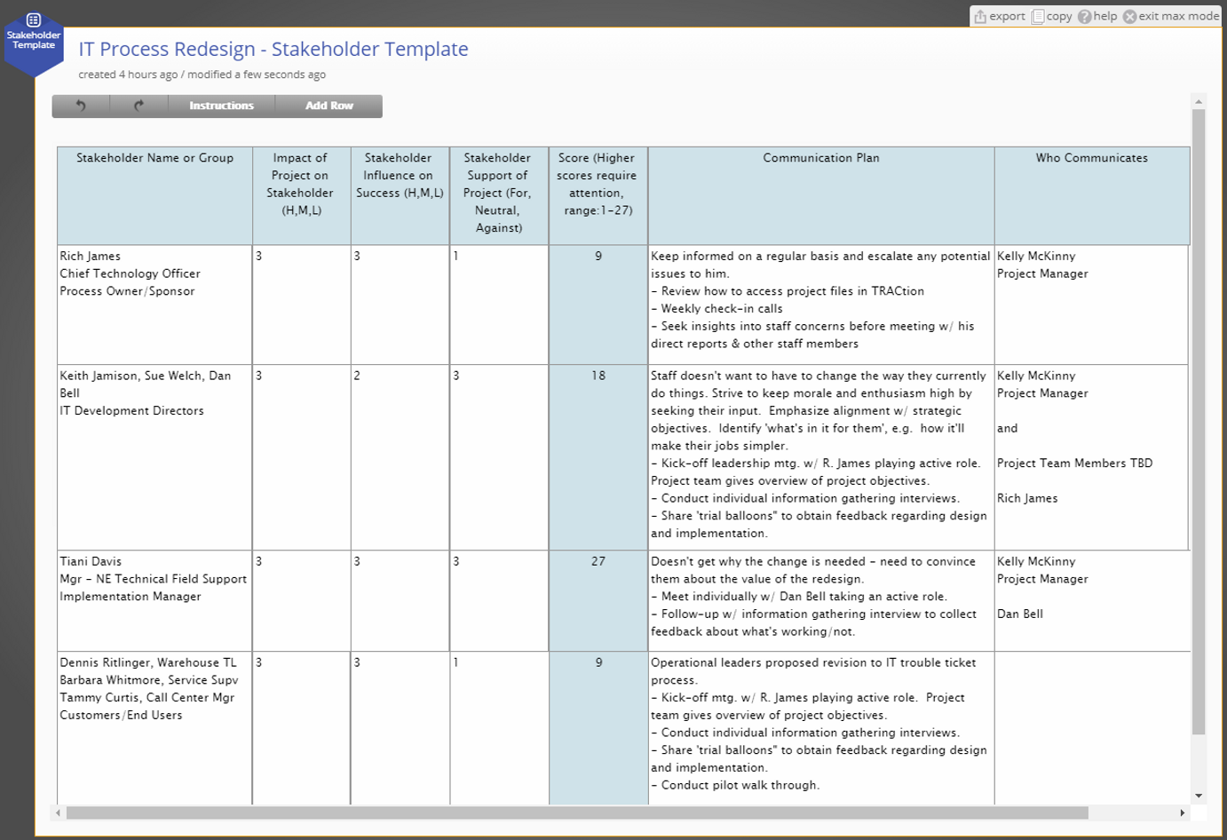 Develop a plan to keep stakeholders actively engaged to ensure projects are successful and the changes are sustained. This template guides you to identify both internal and external stakeholders and then to create a communications plan for the project's duration.