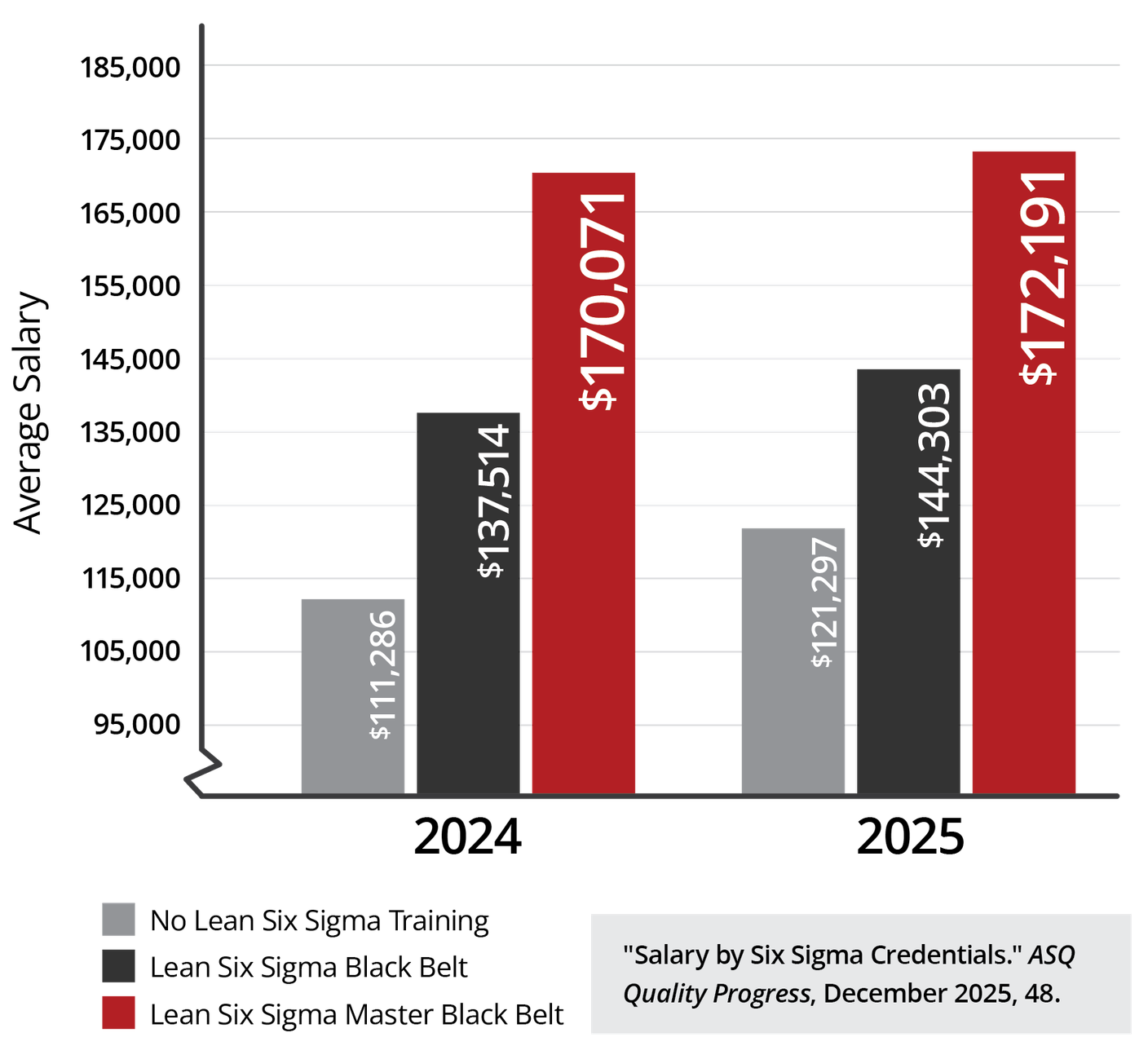 *As of 2024, reported in 'Salary by highest Six Sigma Belt—U.S. and Canadian respondents', Quality Progress, December 2024.