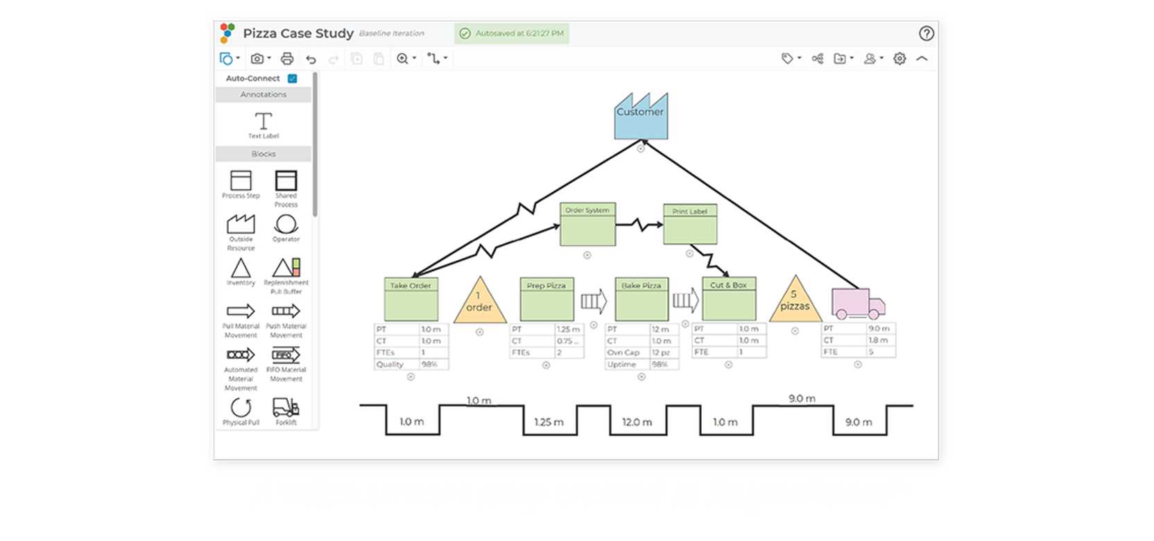 - Evaluate a value stream map that captures process flow, handoffs, delays, and queue time.