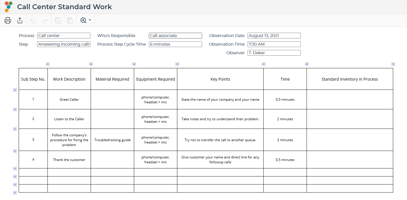 - Track Observations: Record observer names, dates, and specific cycle times to ensure your standards are based on real-world "Gemba" data.